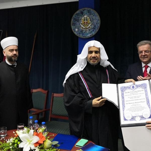 Alfa BK univerzitet dodelio je titulu počasnog doktora nauka dr Muhamedu bin Abdul-Kerimu el Isi, generalnom sekretaru Muslimanske svetske lige - Rabite.