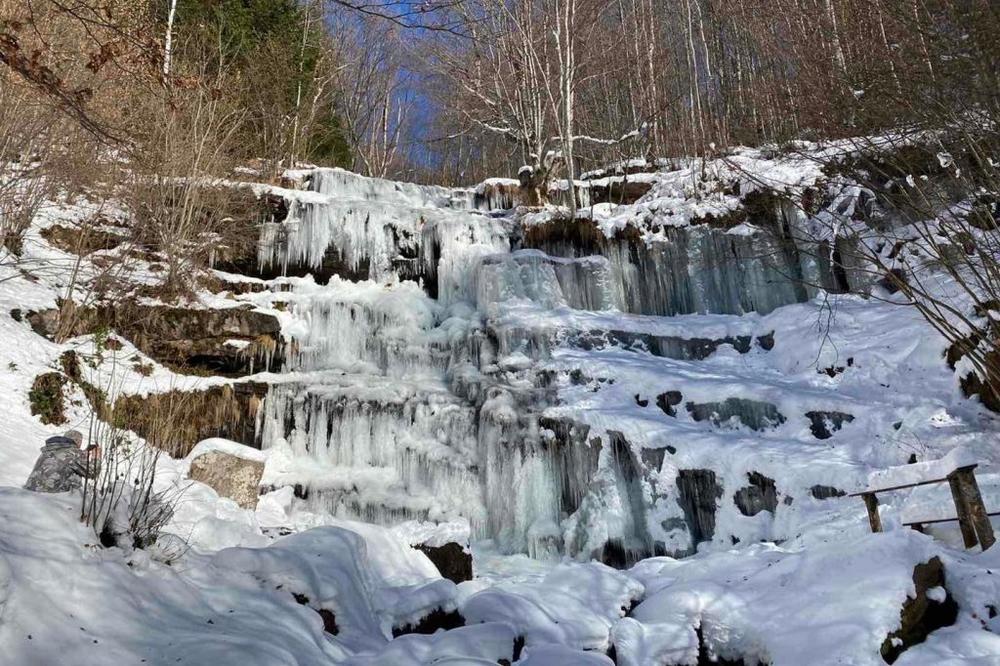 Svih 15 metara crvenih stena preko kojih voda pada zaleđeno je, zajedno sa kapljicama i mlazevima koji su se pretvorili u ledenice, čineći prizor kao iz najlepše bajke.