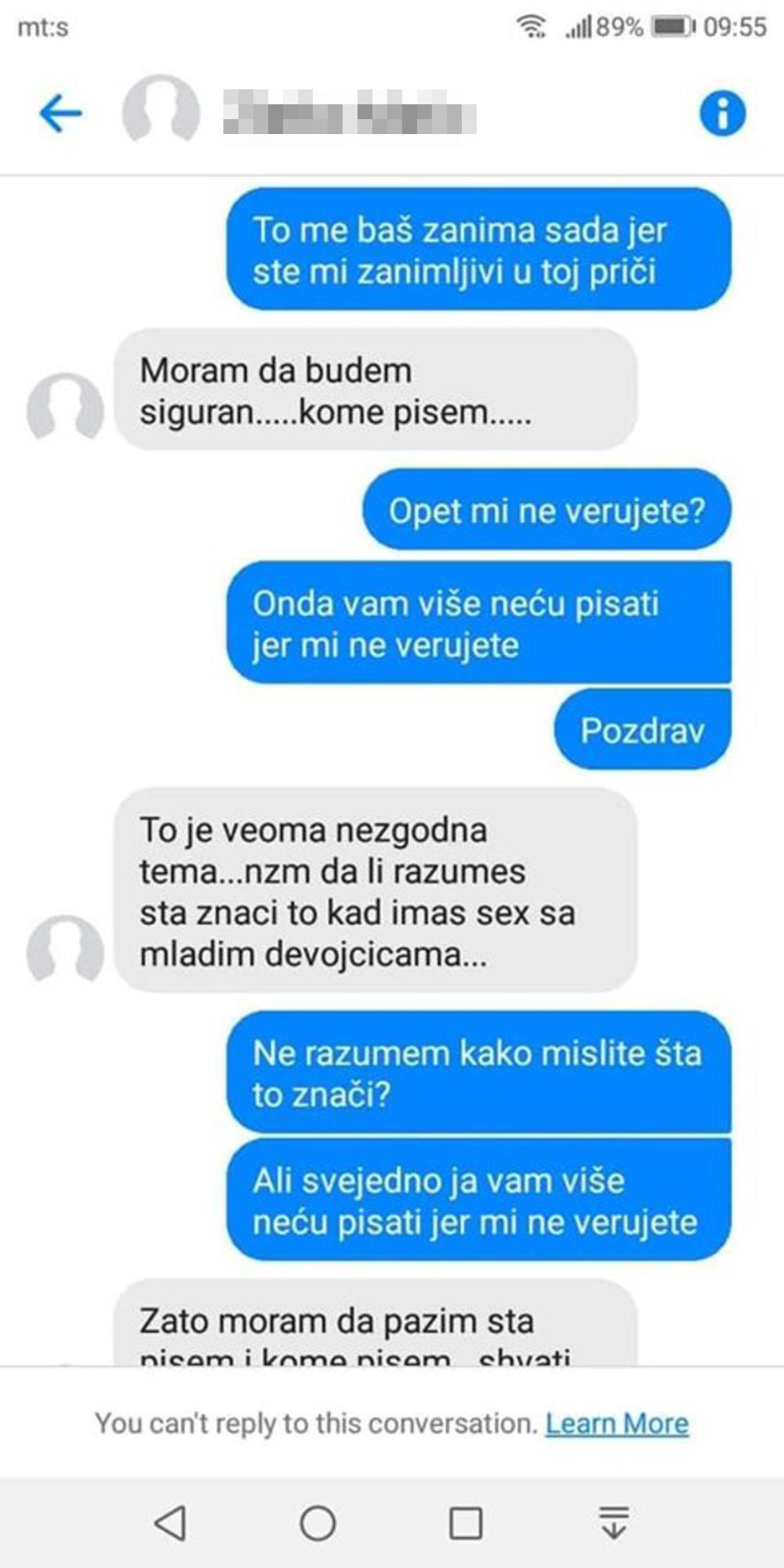 Sve što je slao maloletnici možete pročitati u prepisci ispod:
