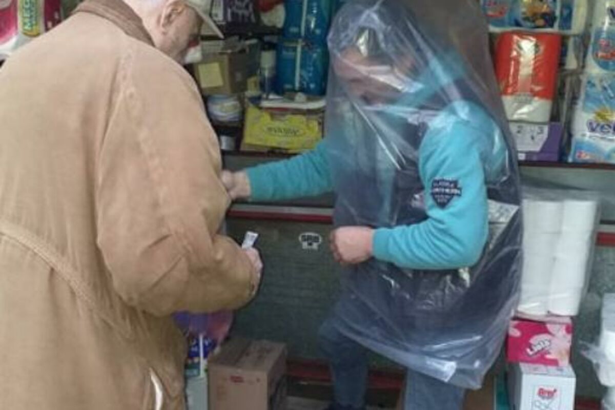 Naime, u pitanju je prodavac na pijaci u Bačkoj Palanci koji je na sebe navukao plastičan džak , kako bi se, sačuvao od "svih mogućih virusa".