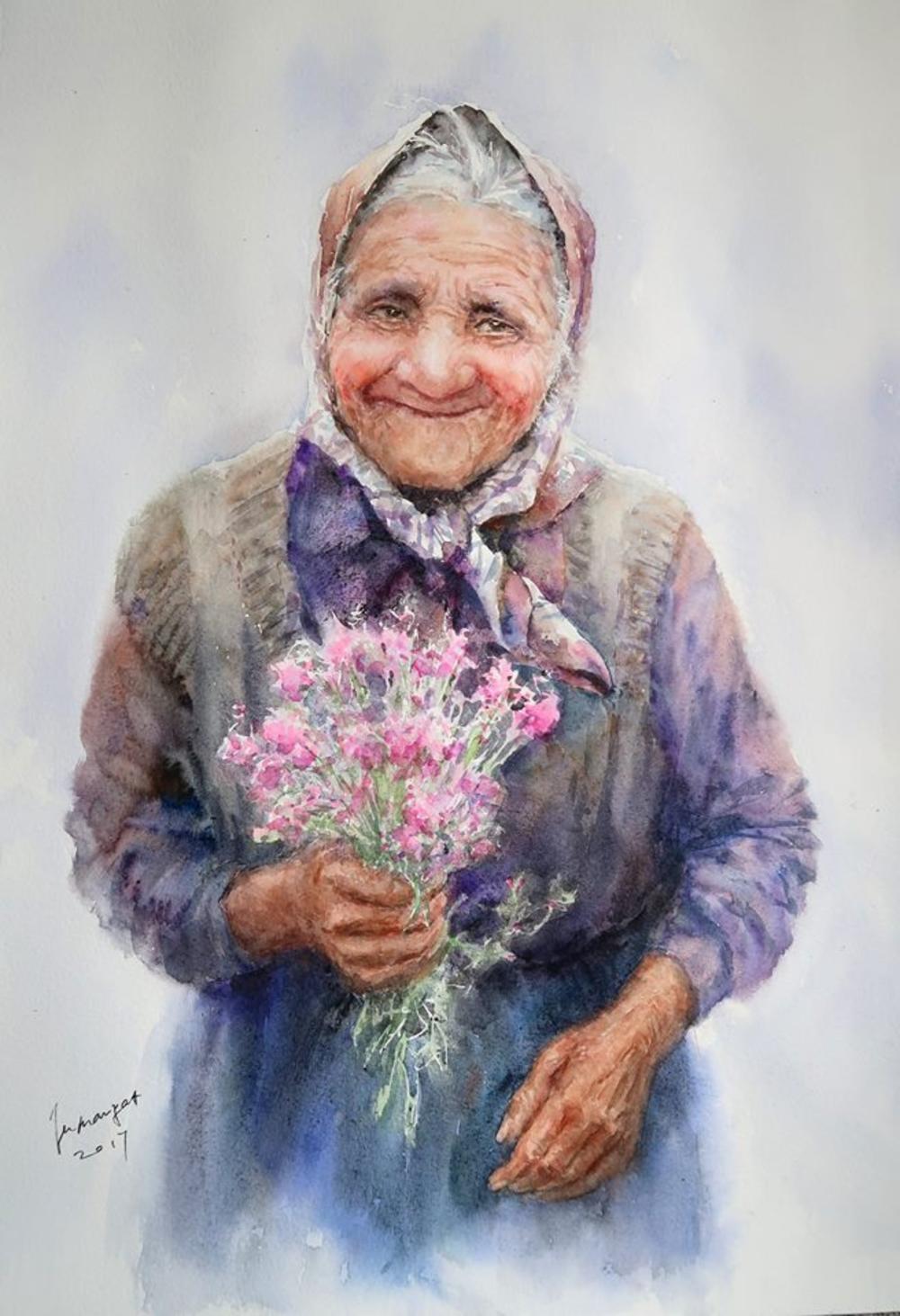 -Jednog dana javila mi se jedna Ruskinja, Ljubov Ležanina, inače umetnica koja izradjuje pečvork tapiserije, sa željom da uradi i baka Tanu. Sa zadovoljstvom sam prihvatila, naravno. Ta tapiserija je obišla celu Rusiju, mislim da su kao udruženje imali izložbe negde po Evropi i u Japanu. Juče sam videla ovu drugu sliku u akvarel tehnici i oduševila se. Nije nigde pisalo ko je autor, pa sam morala da pretražujem malo. Umetnik je iz Hong Konga, zove se Fu Man Jat. Slika je rađena 2017. godine i učestvovala je na onlajn takmičenju organizovanog od strane Kanadskog medjunarodnog udruženja akvarelista i tom prilikom je bila jedna od finalista tog konkursa-objašnjava Perovićeva za Pirotske vesti.