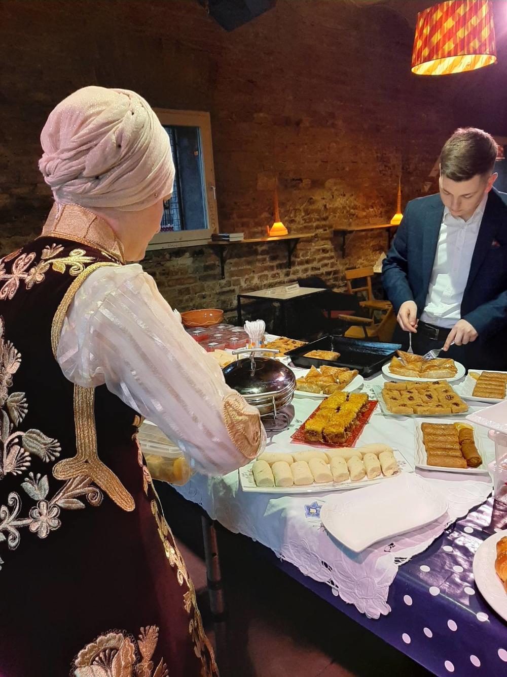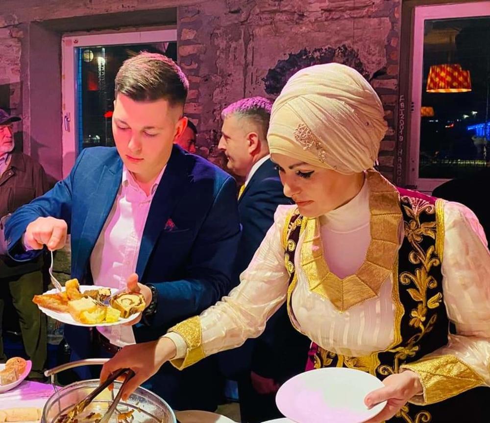 "Spremali smo naše tradicionalne kolače koji se zalivaju saftom od vode i šećera, baklave, kadaif, gurabije. Nezaobilazne su bile i mantije koje se mogu probati samo u našim krajevima. Bilal i ja smo kuvali nekoliko dana da bi sve to ispalo kako treba. Svi specijaliteti su nestali kao halva, jer izgleda da se polako umaramo od savremene kuhinje i ponovo vraćamo korenima. Nema ništa bez naše pite za koju se ručno sukaju kore", kaže Sabiha Dacić.