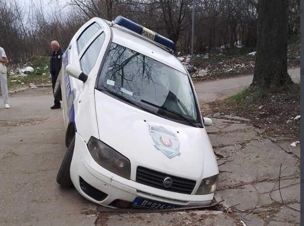 U beogradskom naselju Železnik jedna rupa guta bukvalno sve, pa i policijske automobile. Ovog fijata je bukvalno progutala. Na svu sreću nije bilo povređenih, ali je zato akcija spašavanja automobila iz rupe bila vrlo komplikovana.