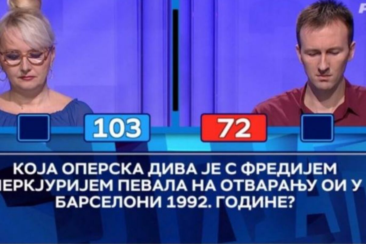 Naime, pitanje je glasilo "Koja operska diva je s Fredijem Merkjurijem pevala na otvaranju OI u Barseloni 1992. godine?".