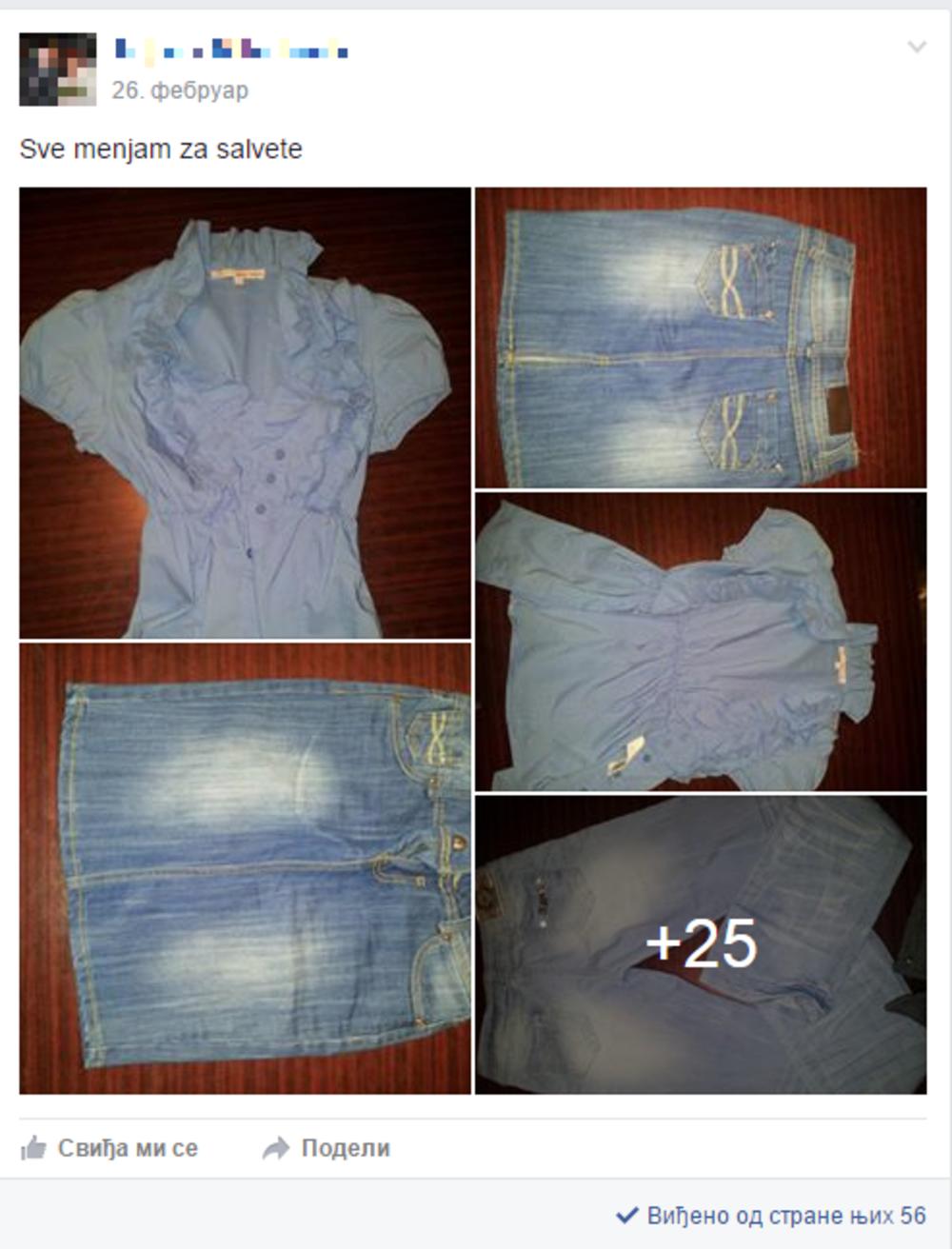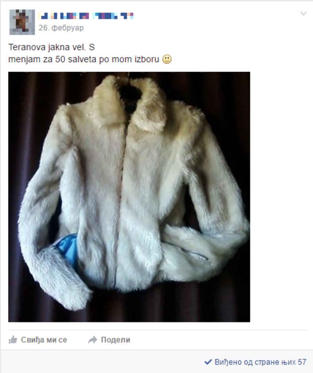 Tako ih u jednoj grupi na Fejsbuku članice aktivno menjaju. Salveta za salvetu. Ili dve za jednu. Ili nešto totalno drugačije. Na primer - jakna za 50 salveta.