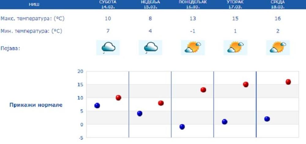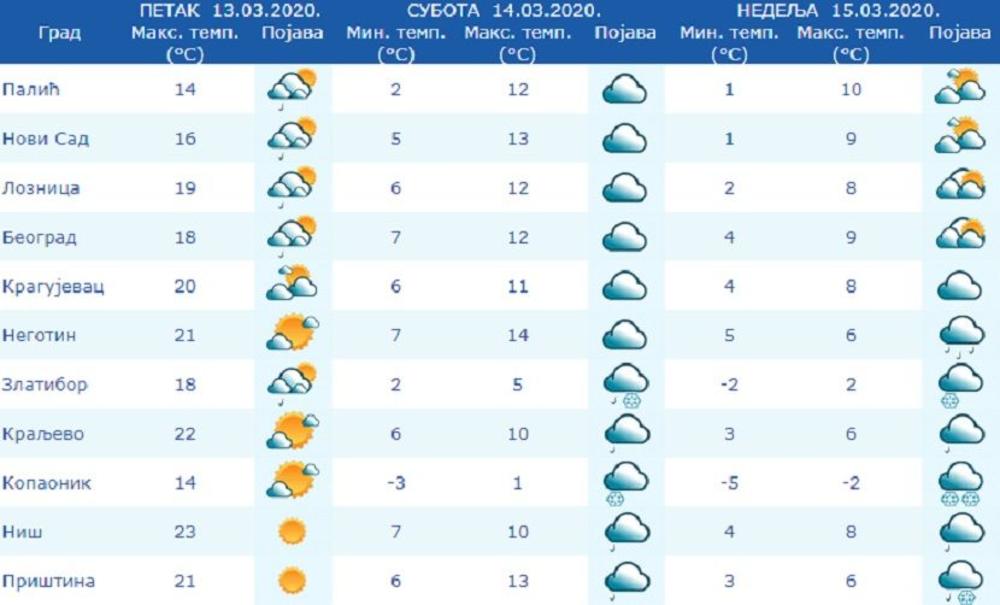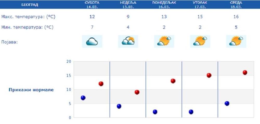 Napominje da će temperatura za vikend pasti za 10 do 15 stepeni i da će najhladnije biti u nedelju najvišom dnevnom temperaturom između šest i 11 stepeni.