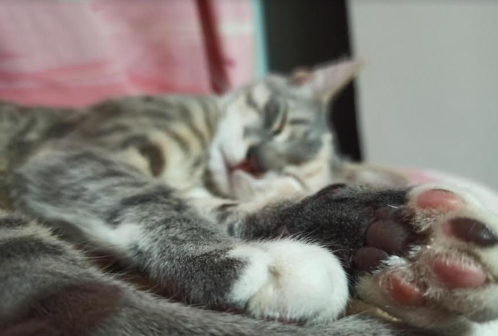 Kada je krenula da ustane, videla je da joj se nešto zakačilo za rame. Tada je ugledala mene - malo mače - pola lica mi je bilo sivo, a pola belo.