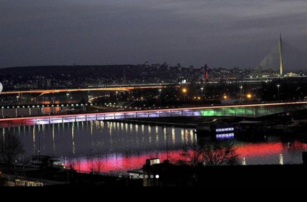 Uz post su objavljene i fotografije palate Albanija, Mosta na Adi, Brankovog mosta i Doma Narodne skupštine koji su u bojama italijanske zastave.