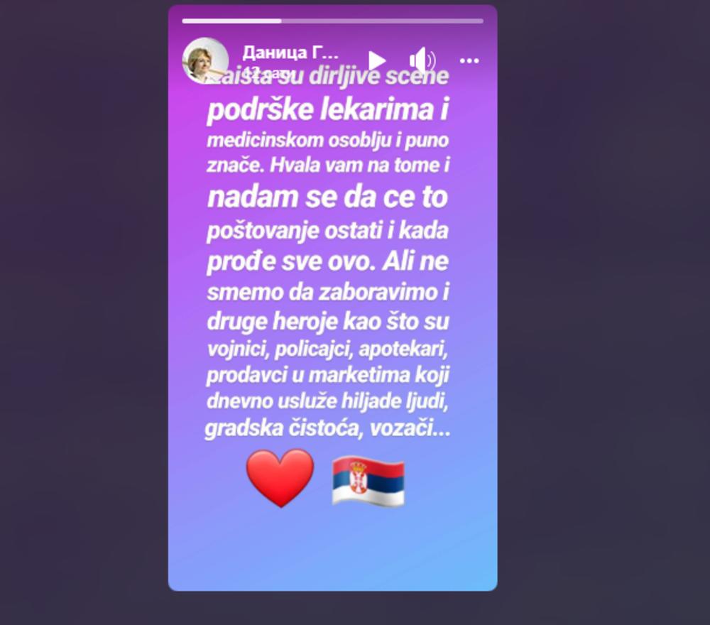O ovoj akciji oglasila se i čuvena doktorka Danica Grujičić. Počastvovana aplauzom, podsetila je da nisu samo lekari oni koji ga zaslužuju... setila se i drugih ljudi.