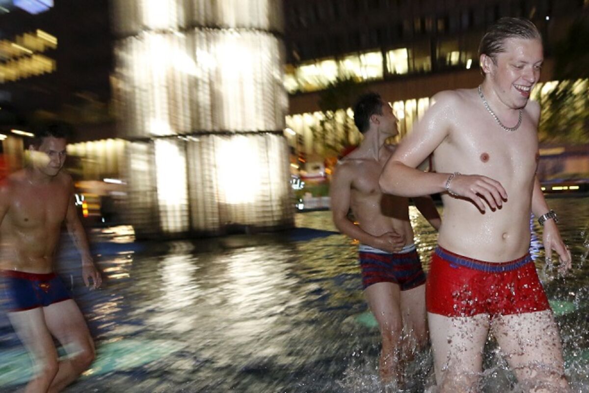 Slavlje je prekunuto u trentku kada su pojedini muškarci jurili oko fontane u centru varoši samo u gaćama, a neki od njih počeli i gaće da skidaju