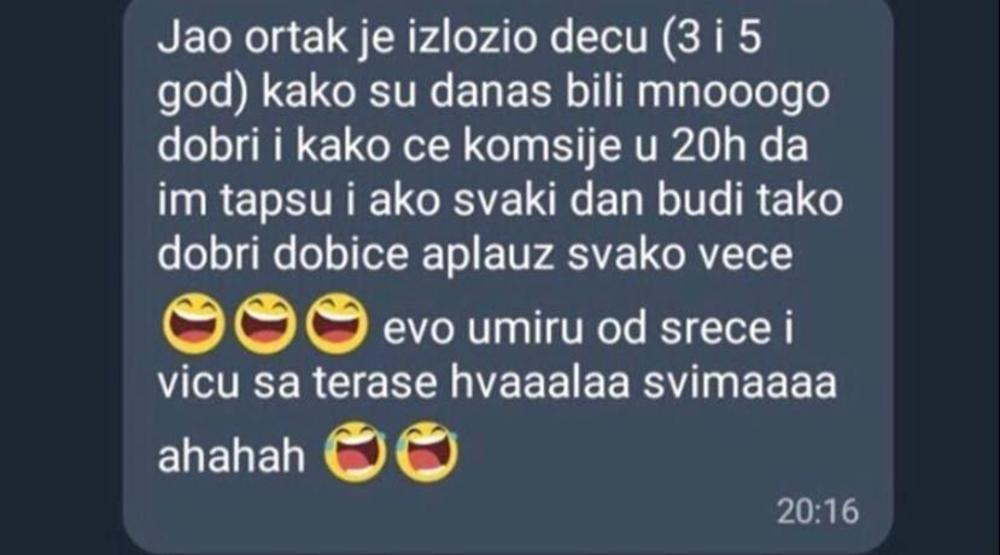 Naime, on im je obećao (deca imaju 3 i 5 godina) da će komšije svako veče u osam sati da im aplaudiraju, ako budu dobri tog dana.