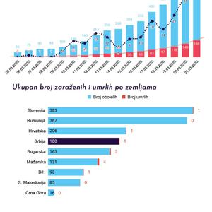 Jutros je saopšteno da je u Srbiji ukupno 188 ljudi obolelo od Covid-19, bolesti koju izaziva novi koronavirus.