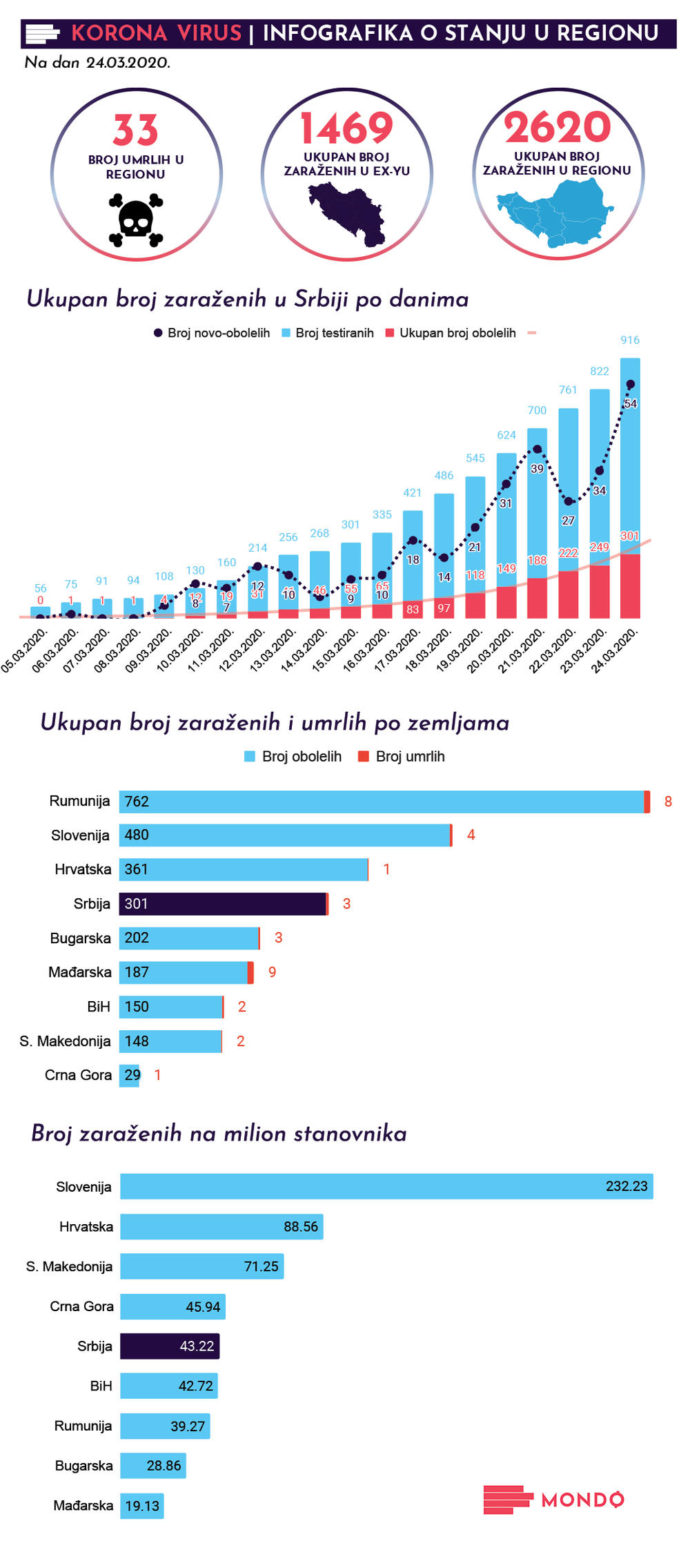 Broj zaraženih u Srbiji je samo za jedan dan skočio za 21%, dok je broj umrlih u regionu samo za jedan dan skočio za 32%.