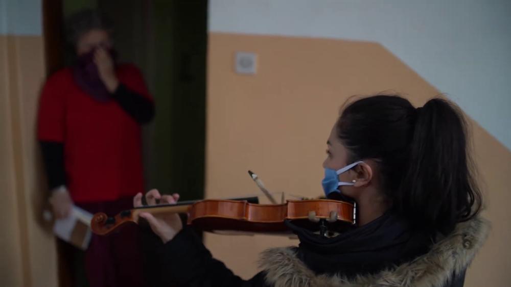 Na vratima domova najstarijih sugrađana, umetnici su izveli poznate srpske pesme.