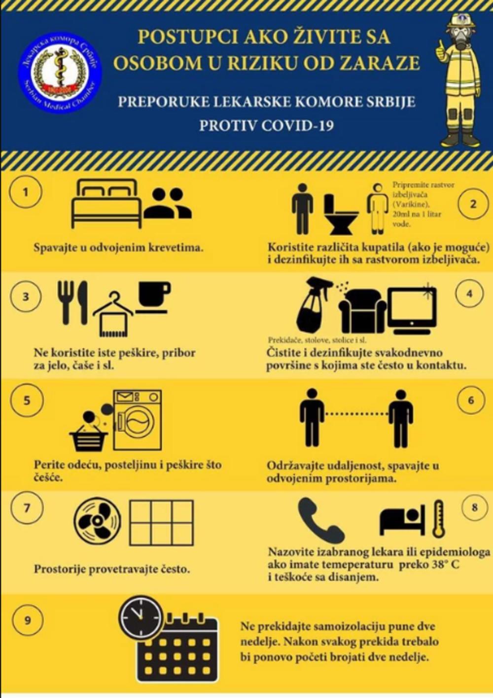Lekarska komora Srbije objavila je preporuke o ponašanju ukoliko u svom domu imate osobu za koju se smatra da ima rizik od zaraze korona virusom.
