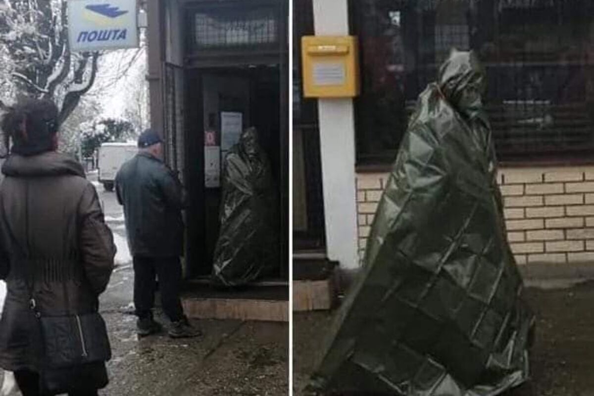 Sa fotografija se ne može utvrditi da li je reč o muškarcu ili ženi, ali sa ovakvom zaštitom ćete sigurno biti primećeni dok budete plaćali račune u Pošti.
