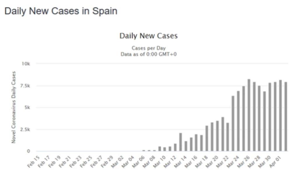 O samom vrhuncu epidemije u ovoj zemlji je teško govoriti budući da nam još uvek stižu brojke koje se kreću oko 8.000 novozaraženih, a najteži dan za Španiju do sad je bio 26. mart kada je zabeležen 8.271 novozaraženi. Dakle, najcrnji dan je došao 12. dana nakon dana u kom je sada Srbija.
