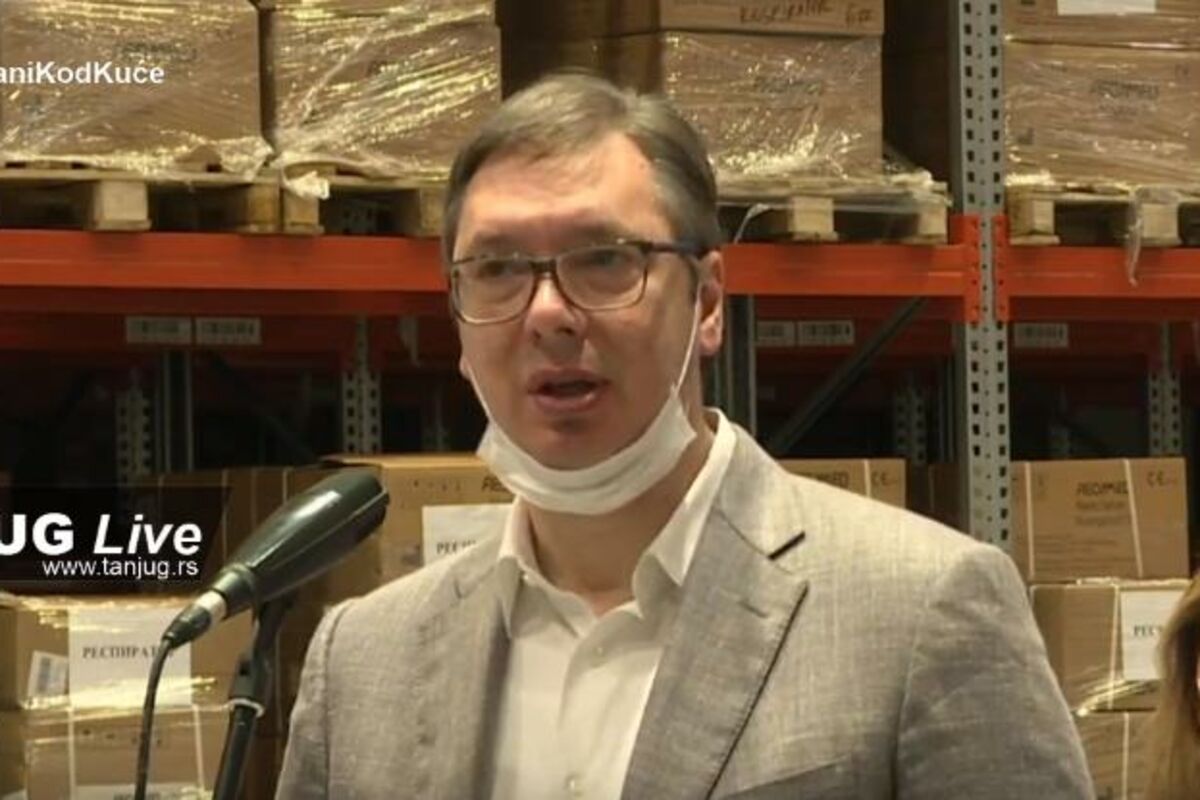 Predsednik Srbije Aleksandar Vučić nalazi se u poseti medicinskog magacina u Krnješevcima kod Pazove.
