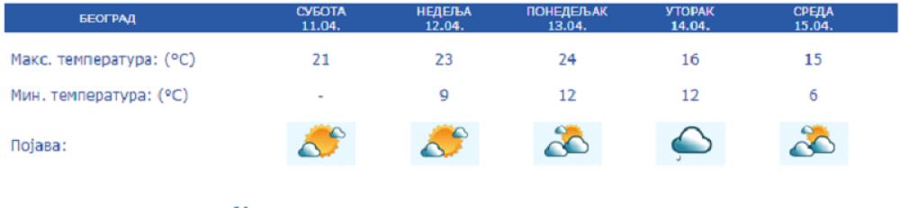 Beogradu jutarnja temperatura oko 9 stepeni, najviša dnevna oko 21 stepen.