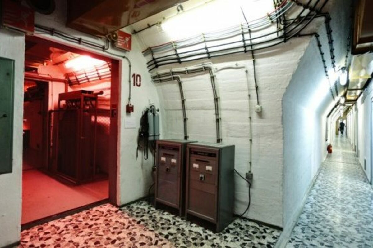 Potom slede metalna vrata debljine 1,20 metara i tunel koji vodi do centra atomskog skloništa, koji može da izdrži udar jačine 20 kilotona.