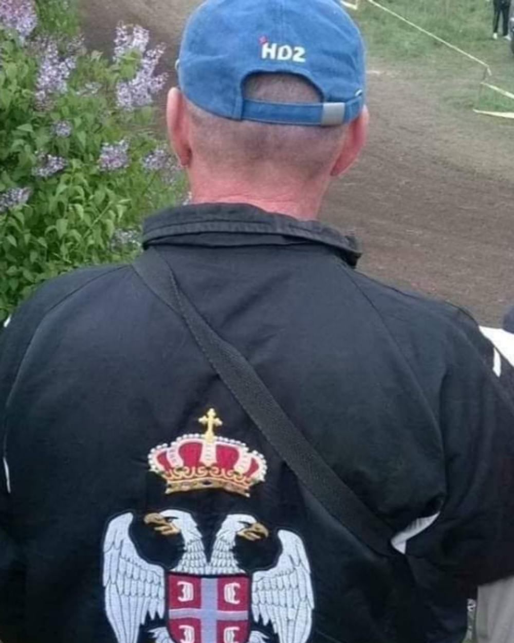 Naime, na poleđini majice koju je obukao je grb Srbije, dok je kačket koji nosi na glavi obeležen sa "HDZ" .