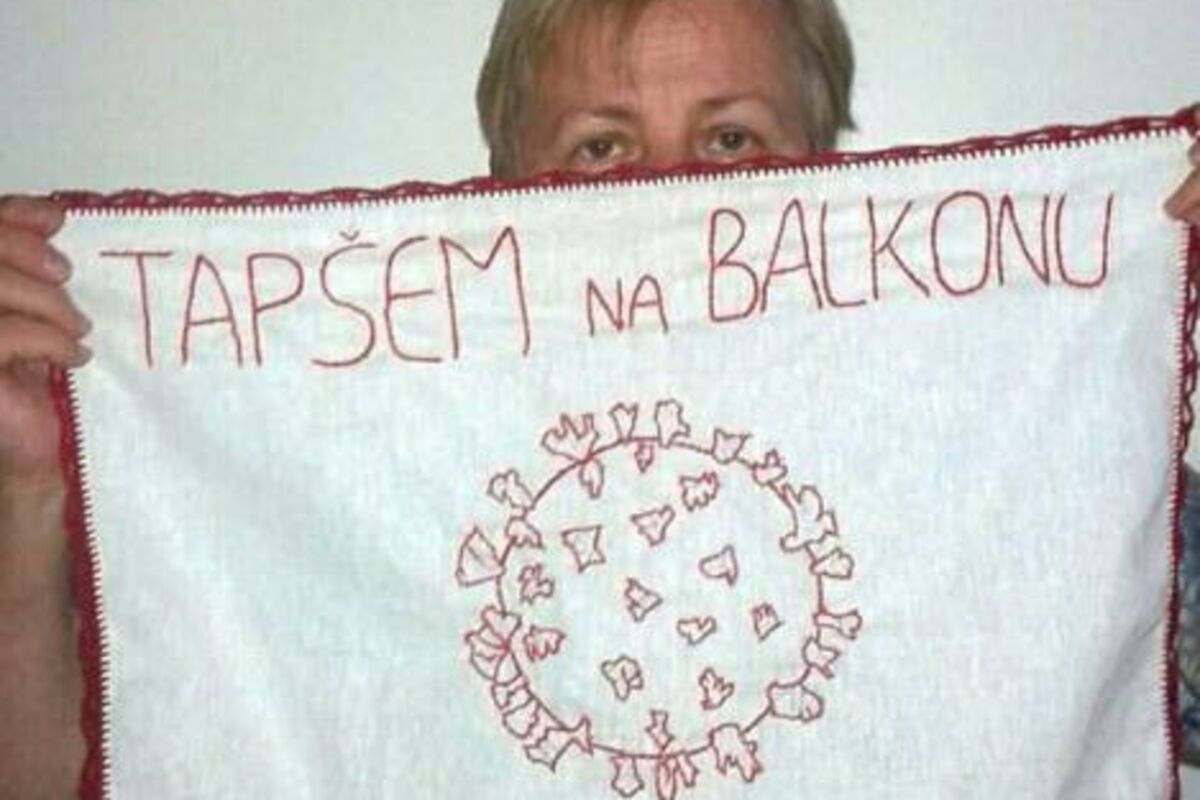 Tako je na mrežama osvanula fotografija bake koja je izvezla jednu kratku poruku: "Tapšem na balkonu da oteram koronu".
