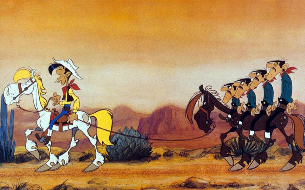 Najveći neprijatelji su mu braća Dalton: Džo, Džek, Vilijam i Averel (svaki viši i gluplji od prethodnog) i mama Dalton. Tu je i Kalamiti Džejn, neotesana kaubojka koja pije, psuje, podriguje i obara muškarcima ruke. Verni pratioci i prijatelji kroz njegove brojne avanture na Divljem zapadu su konj Džoli Džamper, a ponekad i najgluplji pas na svetu Rantanplan, čije ime su različiti domaći izdavači različito prevodili, kao Lajavko, Šaponja i Buvara.