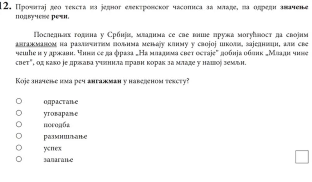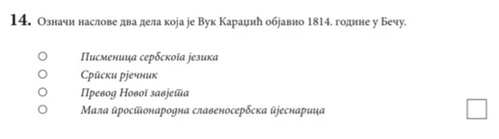 Ovako su izgledala pitanja na prvom probnom testu za male maturante: