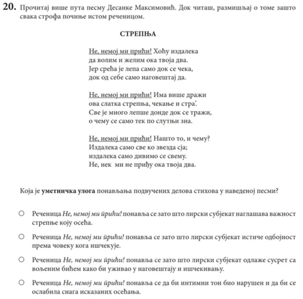 Na testu je bilo ukupno 20 zadataka, a deca su po završetku polaganja izjavila da pitanja nisu bila teška.