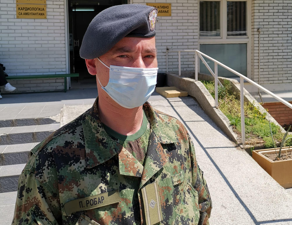 Pripadnici Vojske Srbije angažovani su na brojnim zadacima pružanja pomoći civilnim vlastima i građanima radi sprečavanja širenja virusne infekcije kovid-19. Od proglašenja vanrednog stanja u Republici Srbiji, Vojska Srbije pokazala je, između ostalog, da ima hrabre ljude koji sebe nikada nisu štedeli i ni trenutak se nisu dvoumili da li i na koji način da pomognu u borbi protiv „nevidljivog neprijatelja“. Da je Vojska Srbije uvek tu za svoje građane, pokazali su i dokazali pripadnici Vojske Srbije koji su već 47. dan od uvođenja vanrednog stanja angažovani tamo gde su najpotrebniji. Prvomajski praznici zatekli su na svojim dužnostima zamenika komandanta Prvog raketnog diviziona za PVD u 250. raketnoj brigadi za PVD Ratnog vazduhoplovstva i PVO majora Petera Robara, komandira Odeljenja za zdravstvenu zaštitu 310. inžinjerijskog bataljona Treće brigade kopnene vojske u Prokuplju poručnika Barbaru Đorđević i razvodnika Mariju Zarić iz Komandnog bataljona Komande za obuku, spremne da sa našim čitaocima podele svoje iskustvo stečeno tokom vanrednog stanja. Svaki radni dan je drugačiji Major Peter Robar angažovan je na zadacima sa stručnjacima medicinskih i ABHO timova Oružanih snaga Ruske Federacije na najugroženijim područjima i u kovid bolnicama širom Srbije. Redovno je u područjima u kojima je otkriveno postojanje koronavirusa i pruža pomoć predstavnicima ruske vojske da u našoj zemlji u kontaktu sa lokalnom samoupravom i predstavnicima Vojske Srbije na terenu ostvare što bolje rezultate u sprečavanju širenja zaraze.