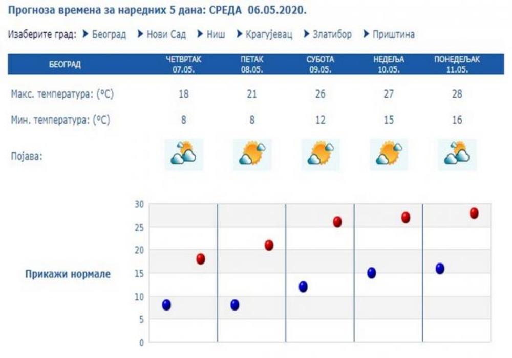 U Beogradu će u subotu biti toplije vreme nego prethodnog dana, uz temperaturu do 26 stepeni. U Nišu delimično sunčano i prijatno vreme, uz najvišu dnevnu od 25 stepeni. I u Novom Sadu biće oblaka koji će zaklanjati sunce i temperaturu od 26 stepeni.