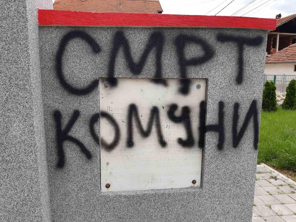 Spomenik u samom centru naselja Brzi Brod, oko 3 sata posle ponoći, skrnavili su vandali grafitima na kojima je napisano „smrt komuni“, precrtali petokraku, nacrtali krst sa četiri ćirilična slova „S“.