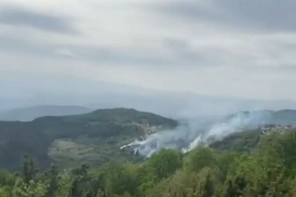Požar bukti ispod kompleksa Milmari, kod nove crkve u vikend naselju, a izuzetno jak vetar, koji je danas prepodne dostizao brzinu i do 110 kilometara na sat, verovatno je doprineo širenju požara.