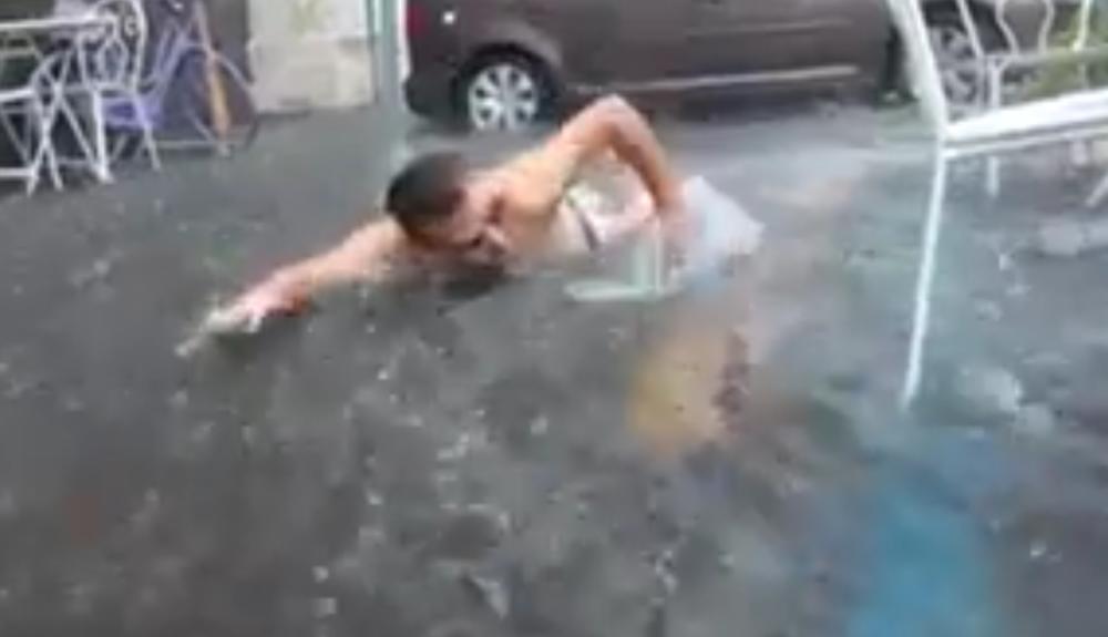 Istripovao bazen: Neki su bežali od nevremena, a ovaj car je pljusak iskoristio maksimalno (VIDEO)