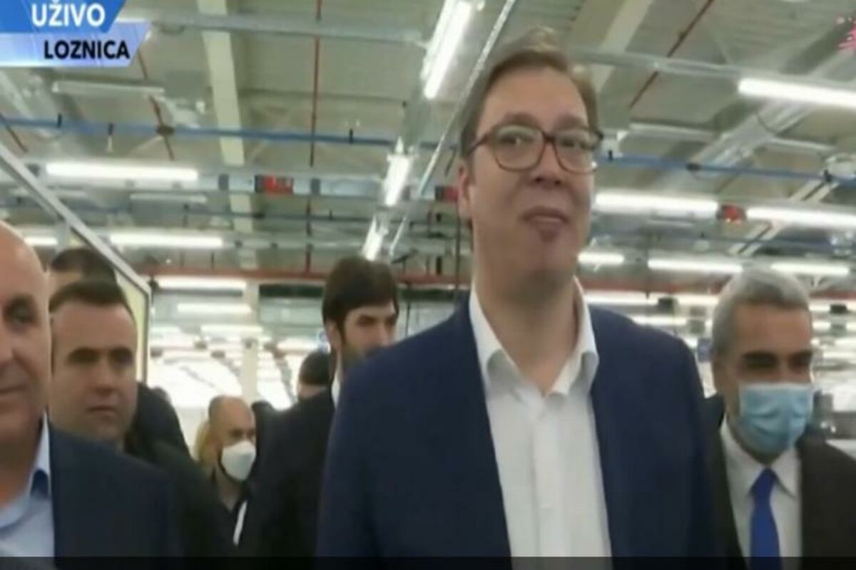 Predsednik Srbije prošetao je objektom, razgovara sa direktorom fabrike i zaposlenima, poželeo je svima dobar dan i srećan rad