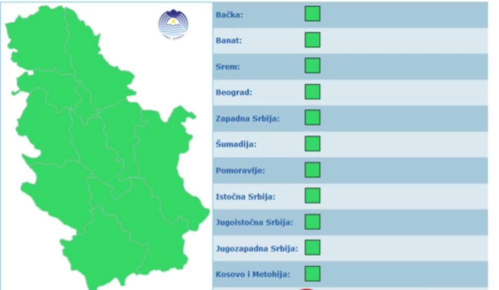 Žuti meteoalarm na snazi je u Pomoravlju, Banatu, Istočnoj, Jugoistočnoj i Jugozapadnoj Srbiji, kao i na KiM. To znači da vreme može biti opasno i da je potreban oprez.