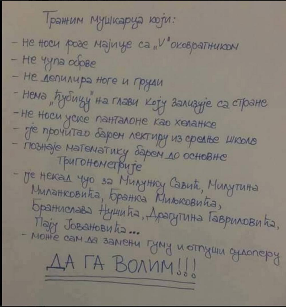 Srpkinja dala oglas kojim je razbesnela Fejs: 9 stvari tražim od pravog muškarca! #4 je hit (FOTO)