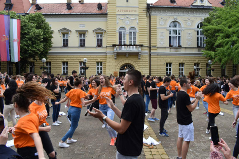 Uprkos korona virusu, ali i kiši koja je pretila, nešto više od 300 maturanata iz četiri srednje škole u Kikindi plesalo je danas svoju jedinstvenu maturantsku paradu.