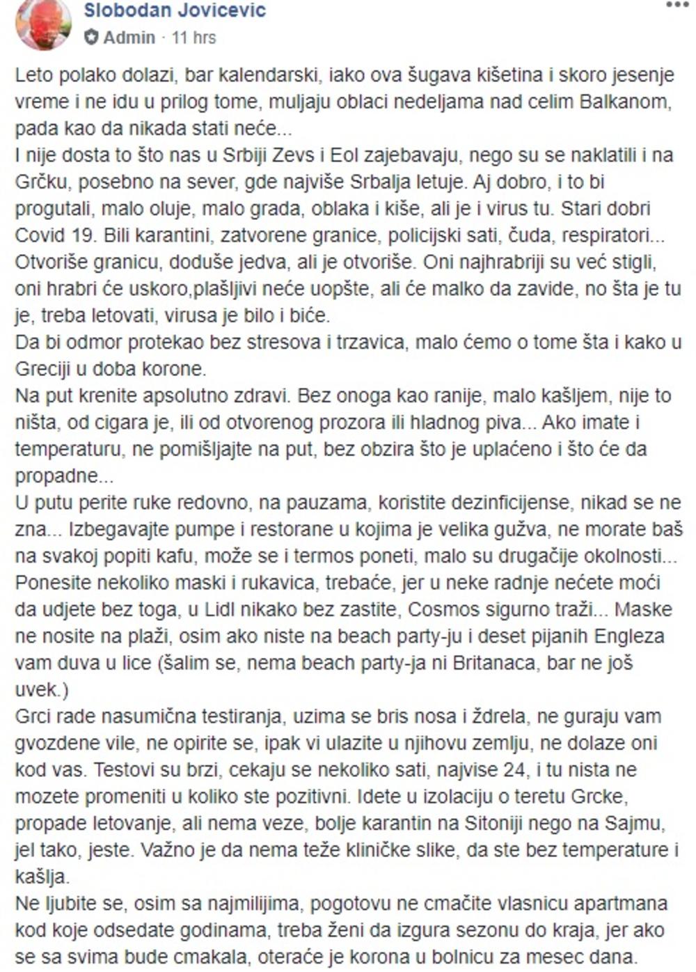 Slobodan Jovićević, admin grupe Grčka-grupa za turiste detaljno je opisao šta vas čeka ukoliko se odlučite tamo da letujete...