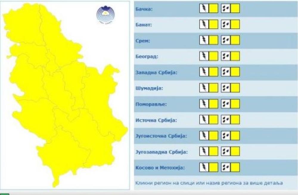 RHMZ je prethodno upozorio da će do petka u Srbiji biti nestabilno, sa plјuskovima i grmlјavinom, lokalno s obilnim padavinama (od 20 do 40 mm za kratko vreme, a ponegde i znatno više).