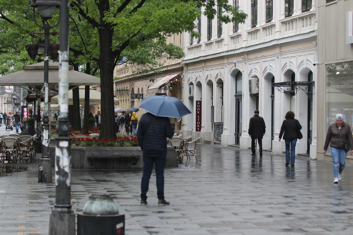 U zoni pljuskova kratkotrajno jak vetar i grad, upozorio je Republički hidrometrološki zavod.