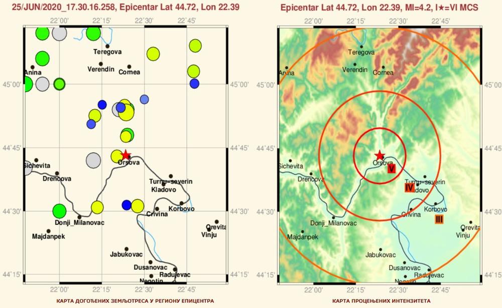 U 19 časova i 30 minuta po lokalnom vremenu registrovan je zemljotres magnitude 4.2 jedinica Rihterove skale u regionu Kladova. Intezitet u epicentru, koji se prema podacima Republičkog seizmološkog zavoda nalazi u Oršavi u Rumuniji, procenjen je na šesti stepen Merkalijeve skale.