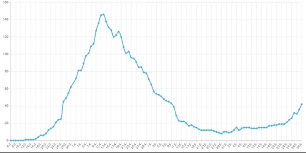 Ovo je najveći broj osoba na respiratorima još od 29. aprila, kada ih je bilo 78, dok lekari kao jedan od najcrnjih dana pamte 12. april kada je na ove aparate u bolnicama širom Srbije bilo priključeno 146 osoba.