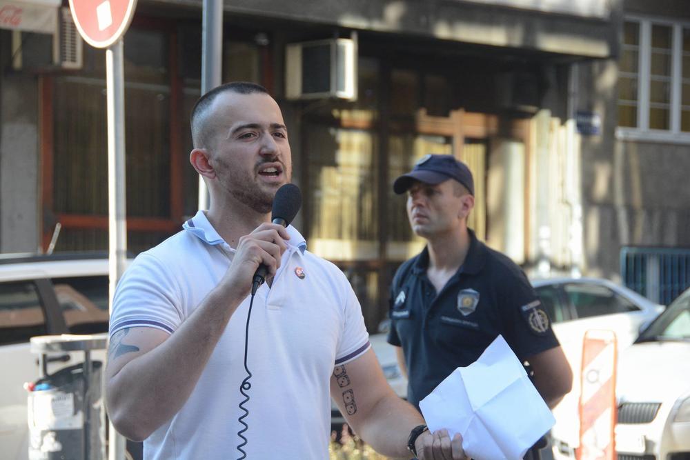 17.15 Okupljenim ljudima na protestu se obratio predstavnik organizacije "Anarho" koja se zalaže za ukidanje komunalne policije.