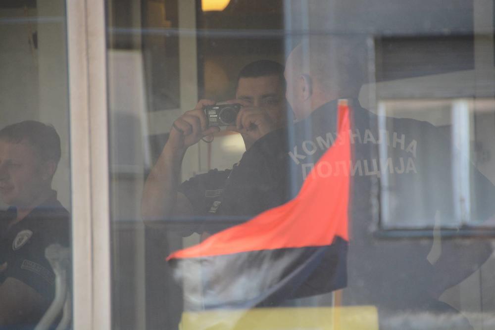 17. 42 Komunalna policija se nalazi u zgradi. Neki od njih ceo ovaj protest posmatraju sa prozora sa osmesima na licima. Pojedinci su čak ovo pronašli toliko zabavnim da su uzeli mobilne telefone u ruke i rešili da dokumentuju okupljenu masu ispred njihove zgrade.