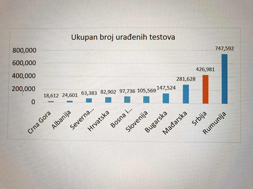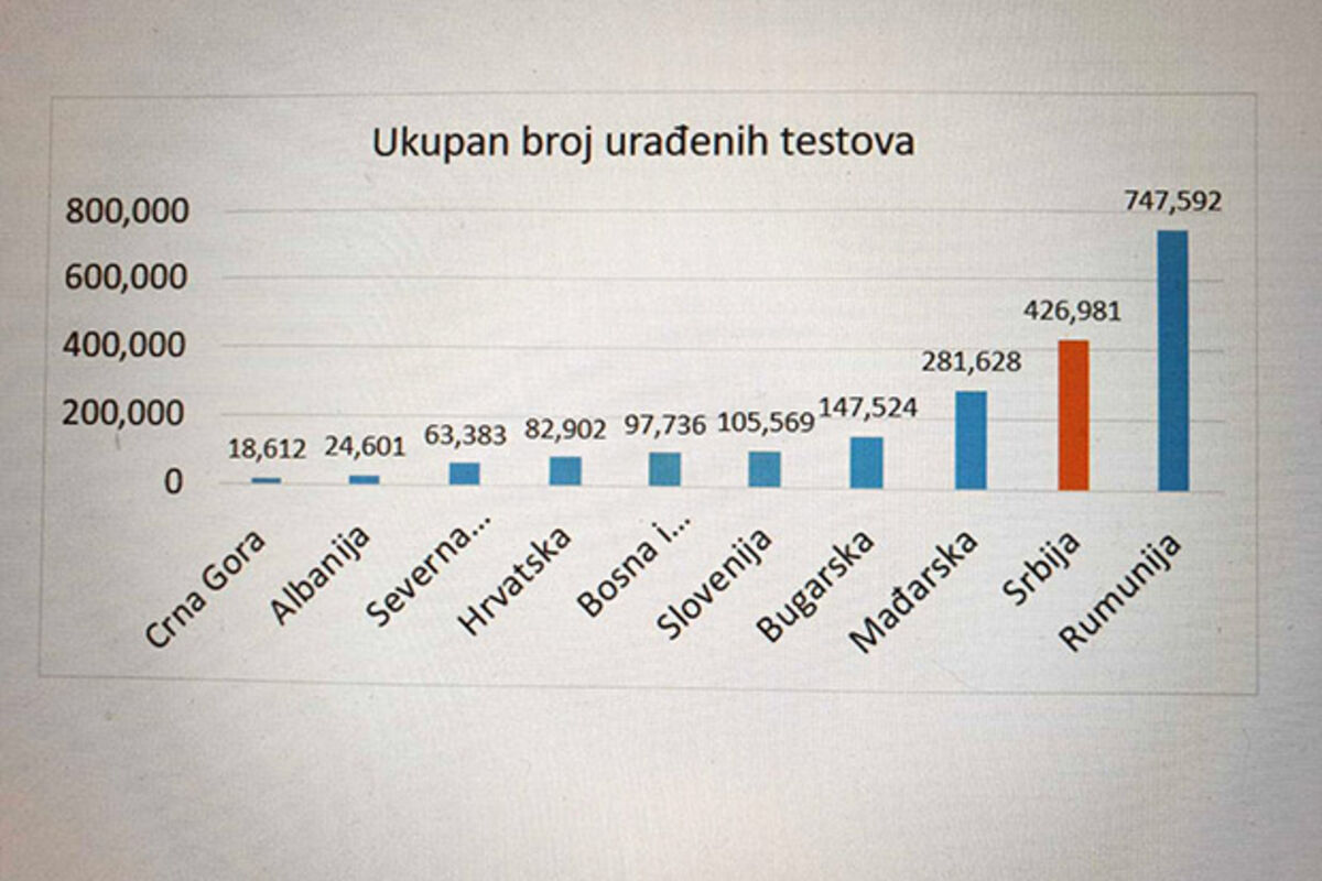 Republika Srbija je do sada na koronavirus testirala 426.981 građana, a na uporednoj tabeli zemalja regiona nalazi se odmah iza Rumunije koja je po broju stanovnika proporcionalno veća od Srbije, što bi značilo da naša zemlja sprovodi najviše testova na virus korona u regionu.