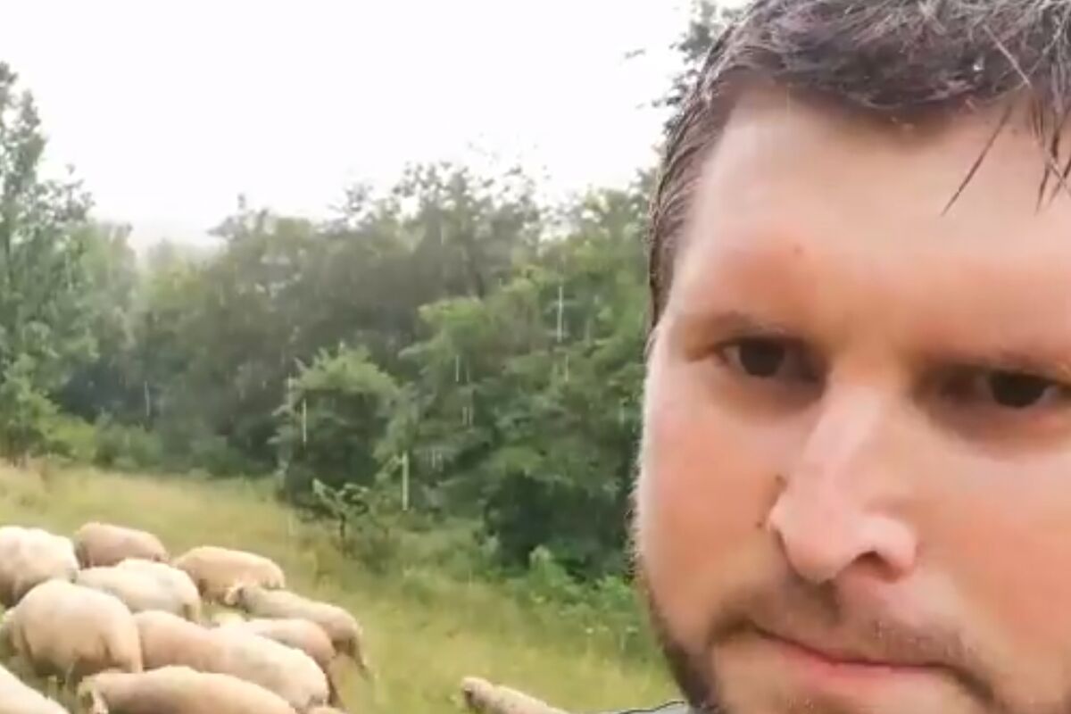 Dok naizgled ležerno stoji, čuvajući stado ovaca, kiša mu pravi problem, a kada puste snimak, ljudi uopšte ne očekuju da čuju reći koje izgovara.