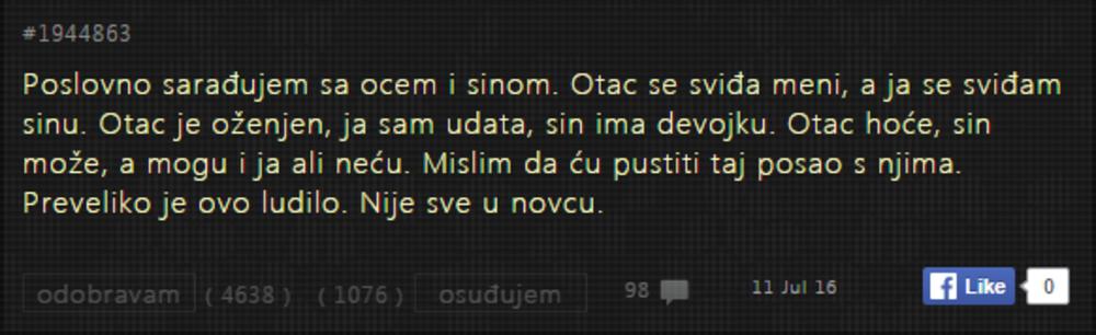 Ovaj sajt neki shvataju baš ozbiljno, pa tu pišu sve svoje životne probleme. Pišu o svojim ličnim tragedijama, raskidima, zdravstvenim problemima.