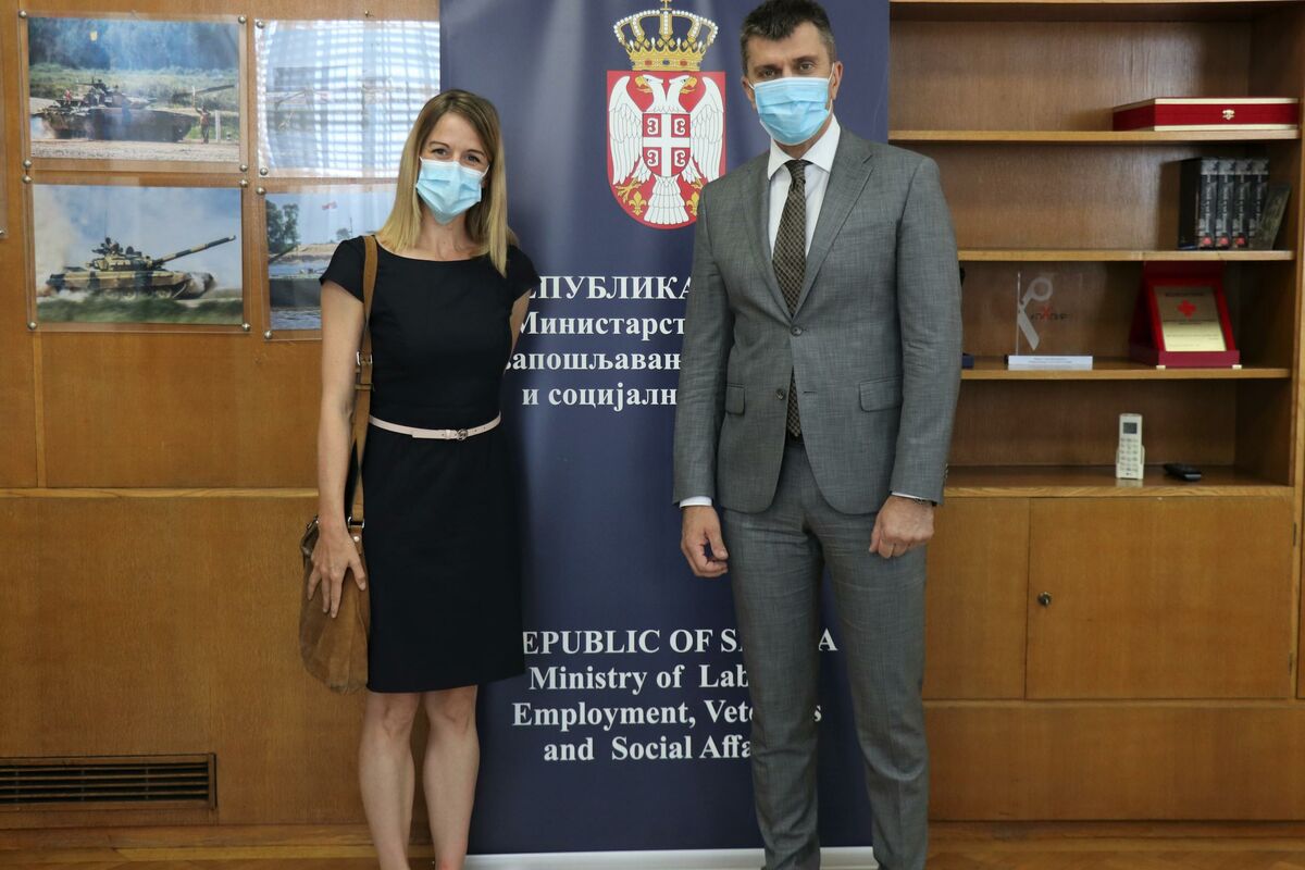 Ministar za rad, zapošljavanje, boračka i socijalna pitanja Zoran Đorđević sastao se sa novopostavljenom direktorkom Nemačke organizacije za međunarodnu saradnju (GIZ) Danielom Funke sa kojom je razgovarao o dosadašnjoj saradnji i projektima koje su resorno ministarstvo i ova organizacija sprovodili u oblastima ekonomskih migracija, socijalne zaštite osetljivih kategorija stanovništva, inkluzije Roma i zapošljavanja.