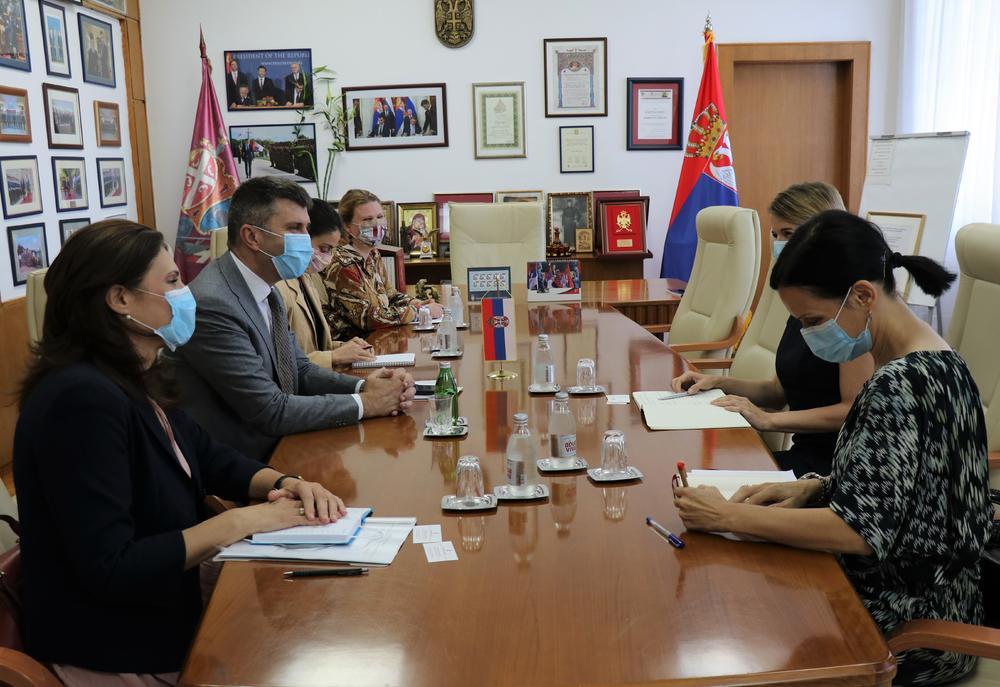 Direktorka Nemačke organizacije za međunarodnu saradnju Daniela Funke zahvalila se ministru Đorđeviću na srdačnoj dobrodošlici i izrazila zadovoljstvo što je njen prvi zvanični sastanak u Srbiji sa partnerskom institucijom od ogromnog značaja za nemačku razvojnu saradnju.